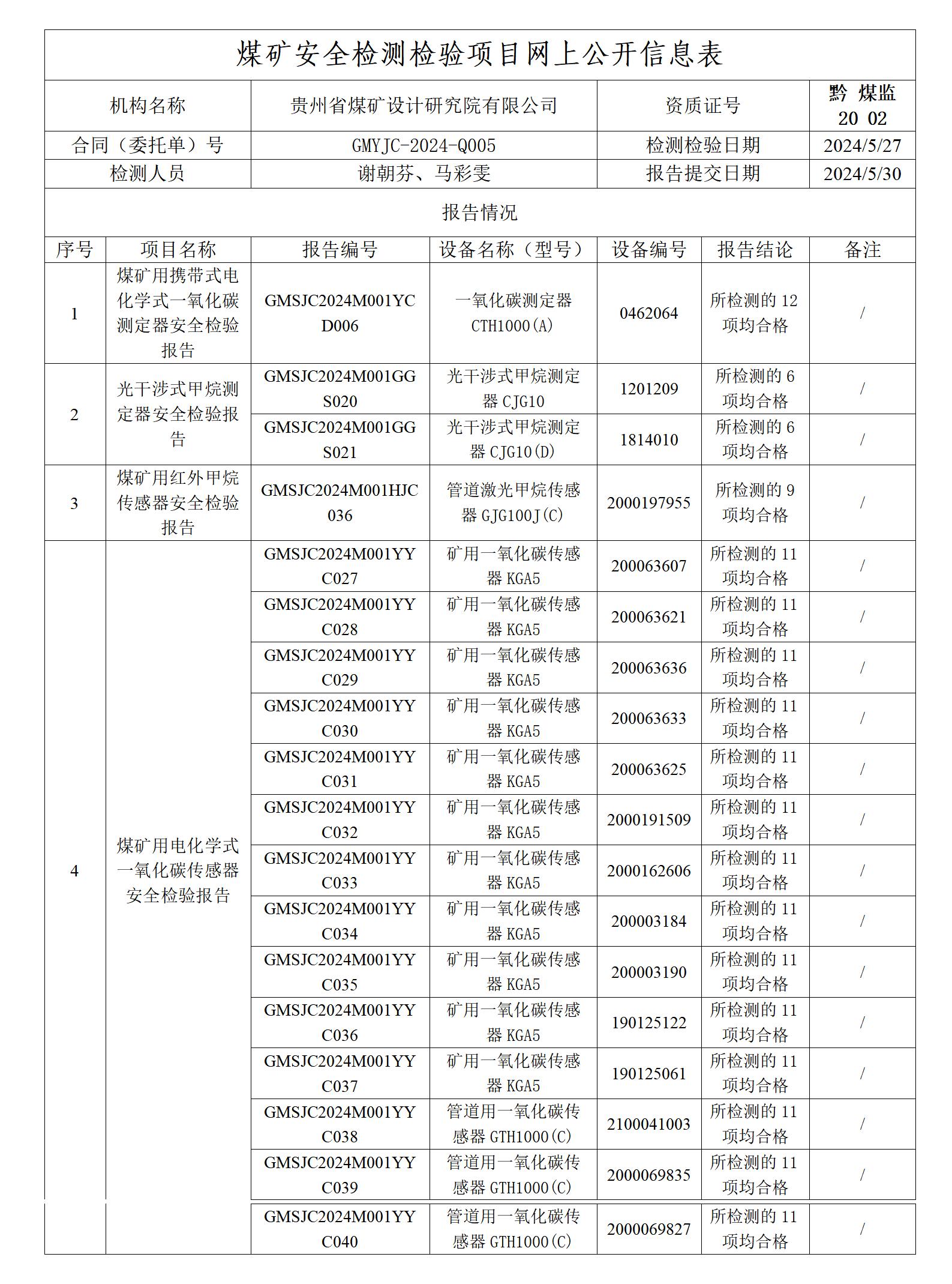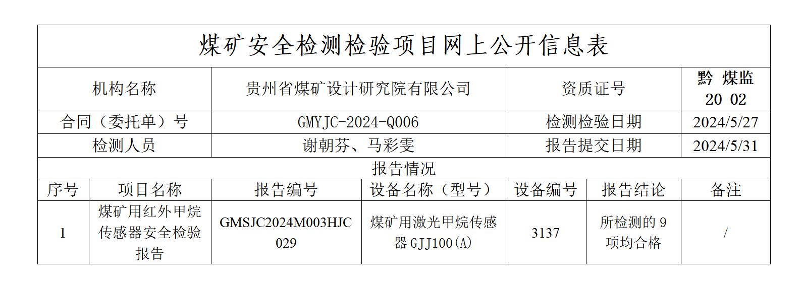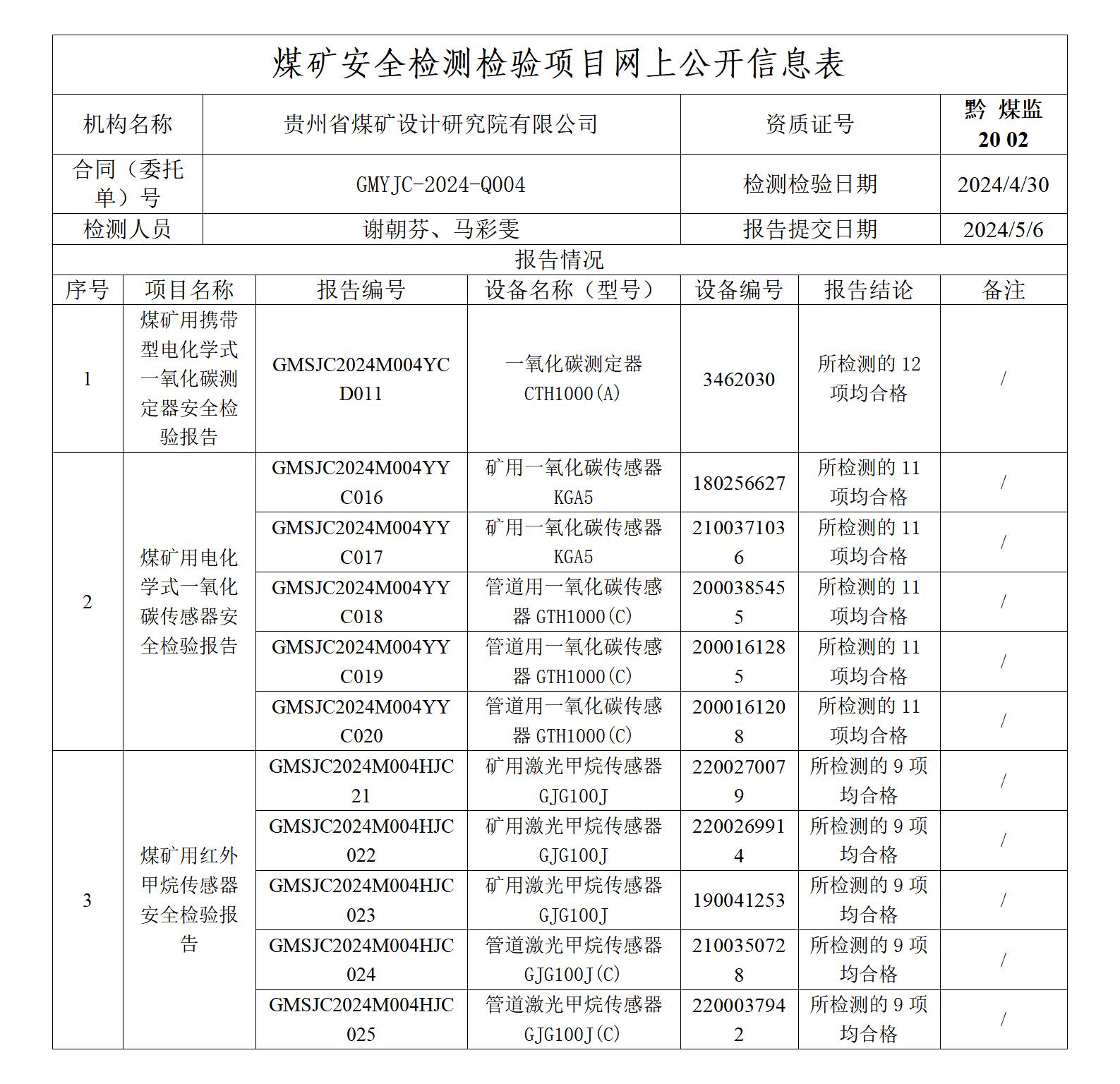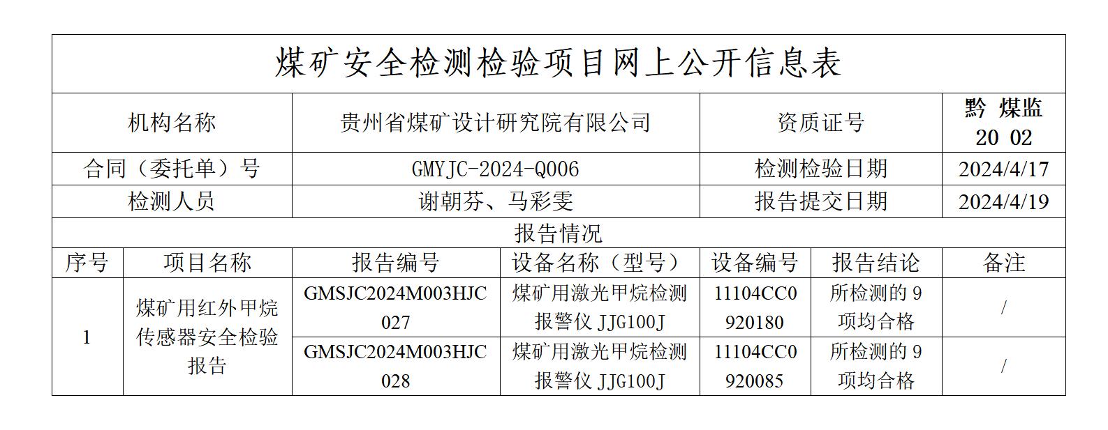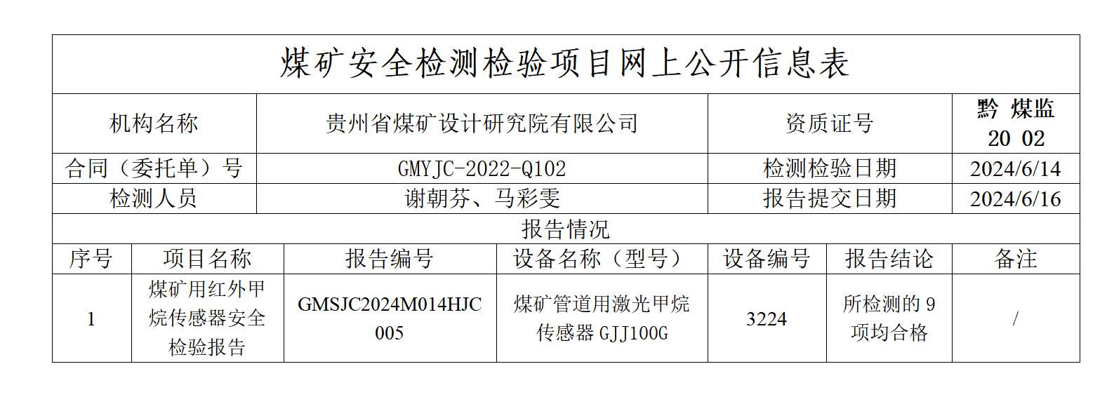 煤礦安全檢測檢驗項目網上公開信息表(2024.7.2)