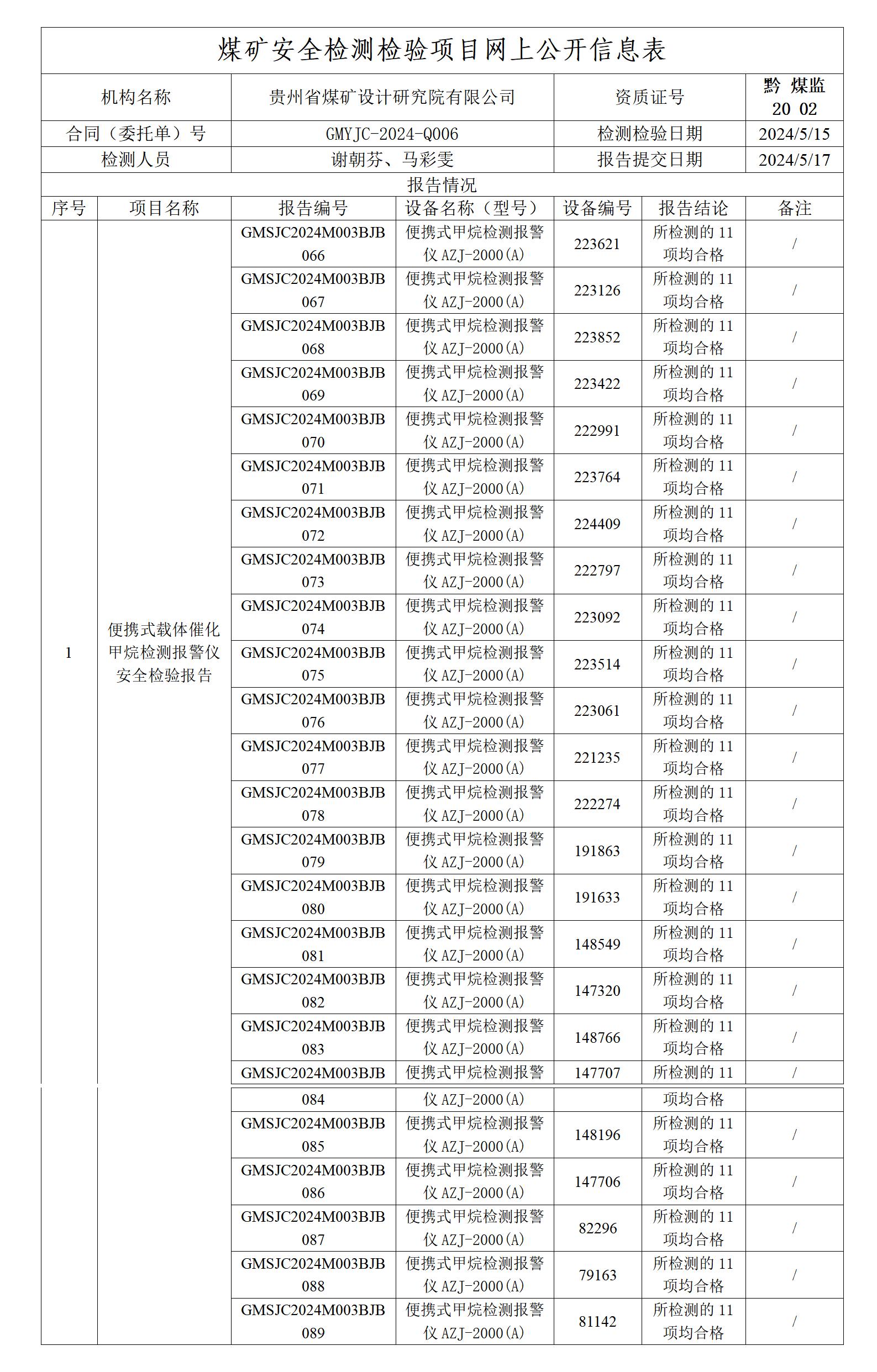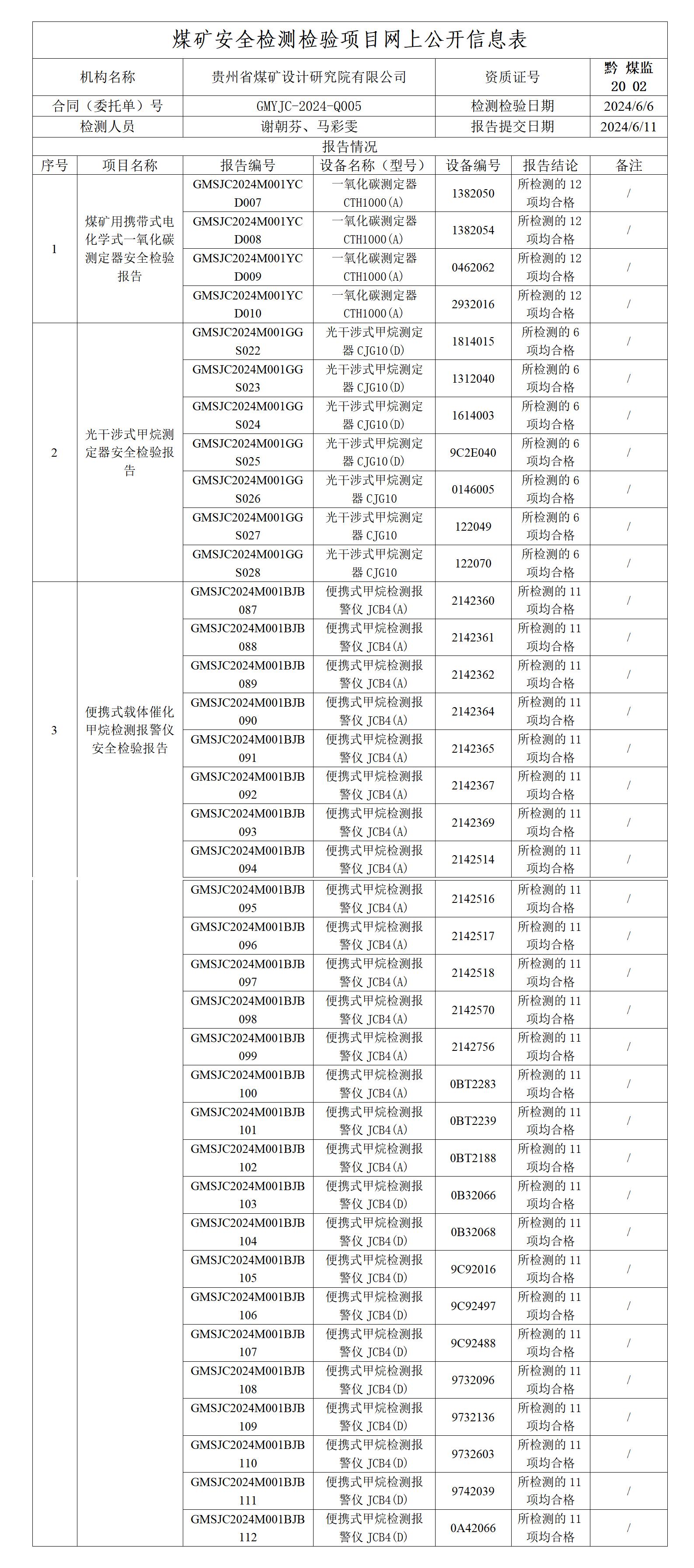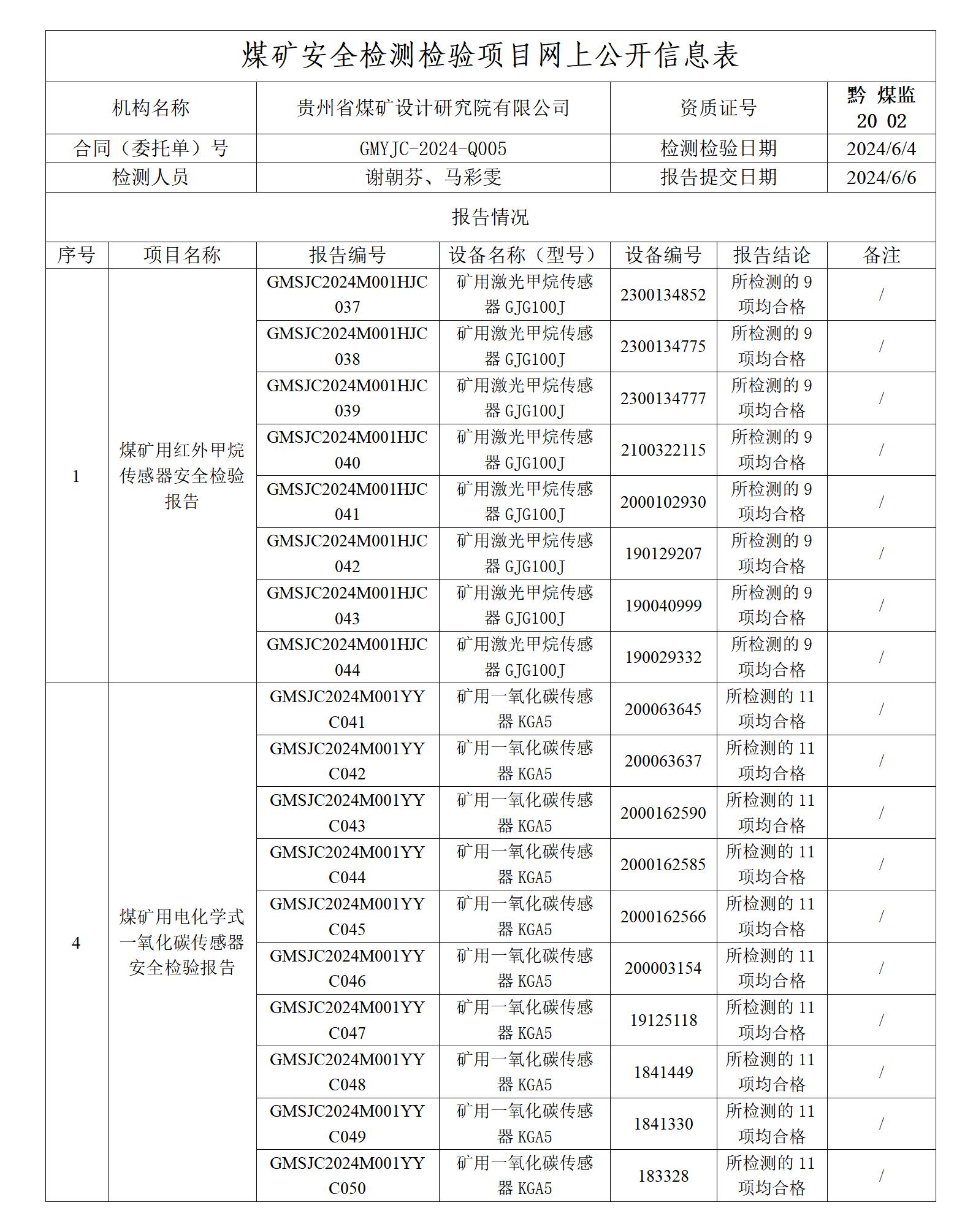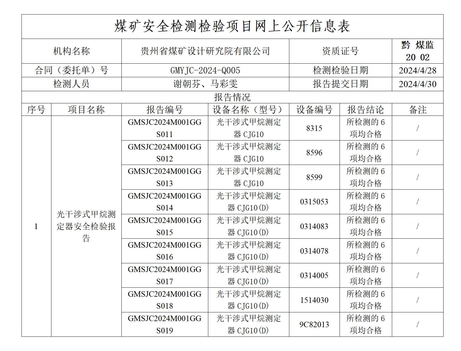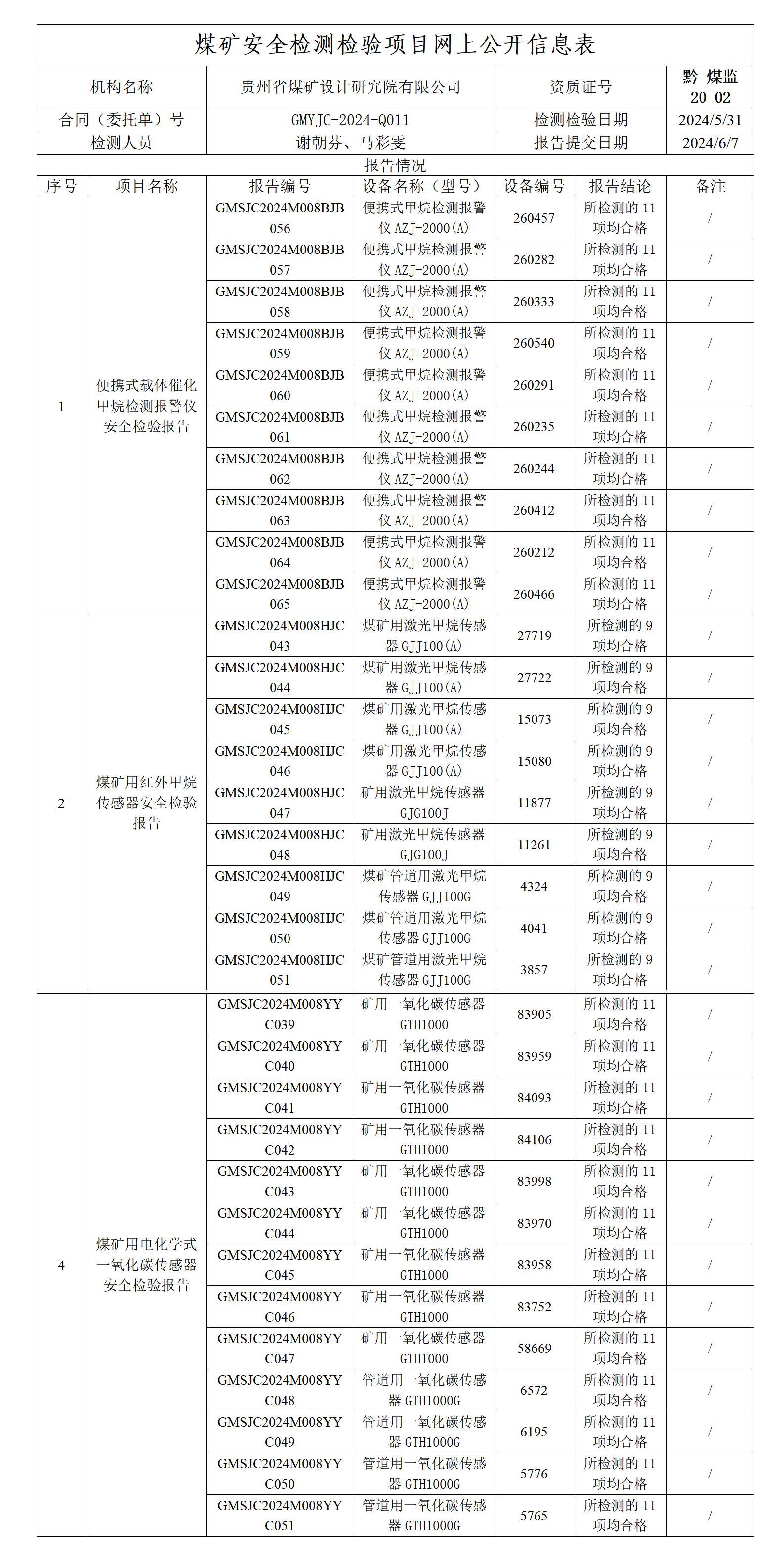 煤礦安全檢測檢驗項目網上公開信息表(2024.7.2)