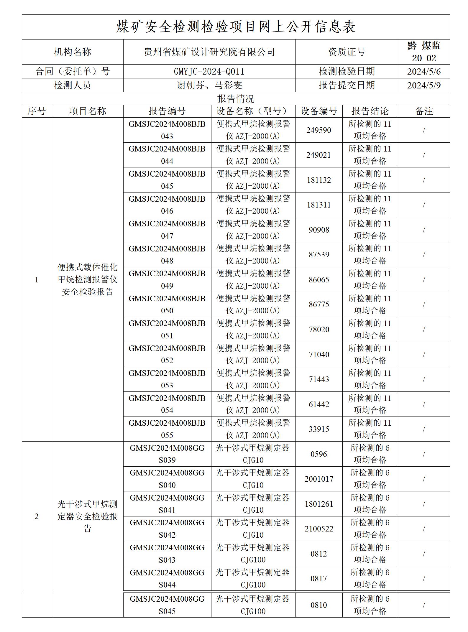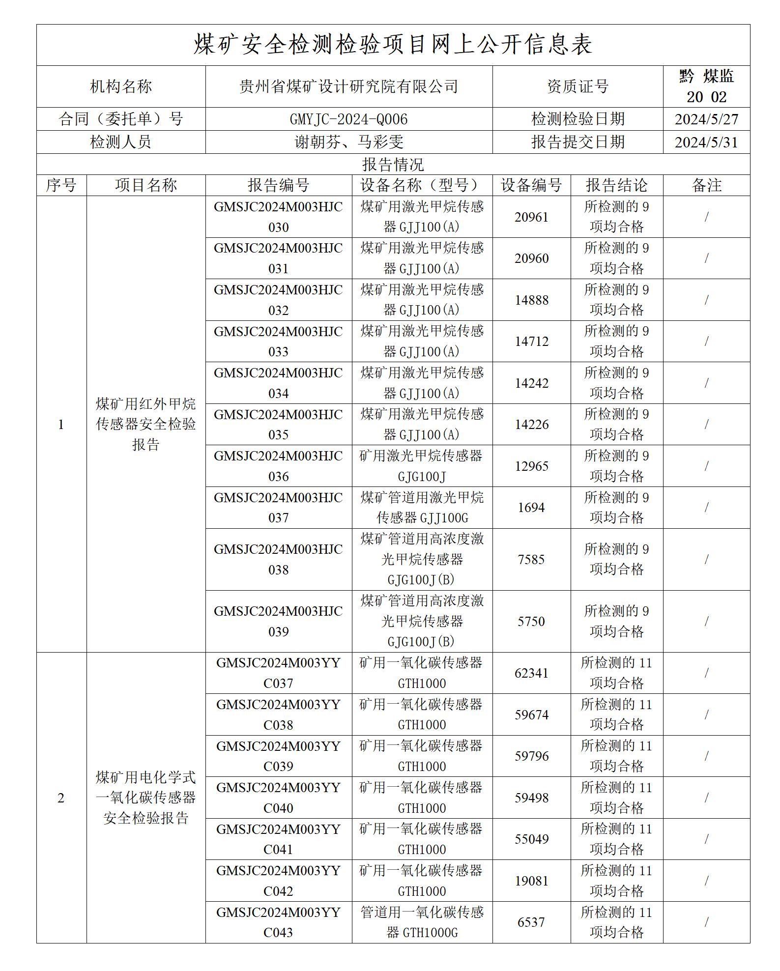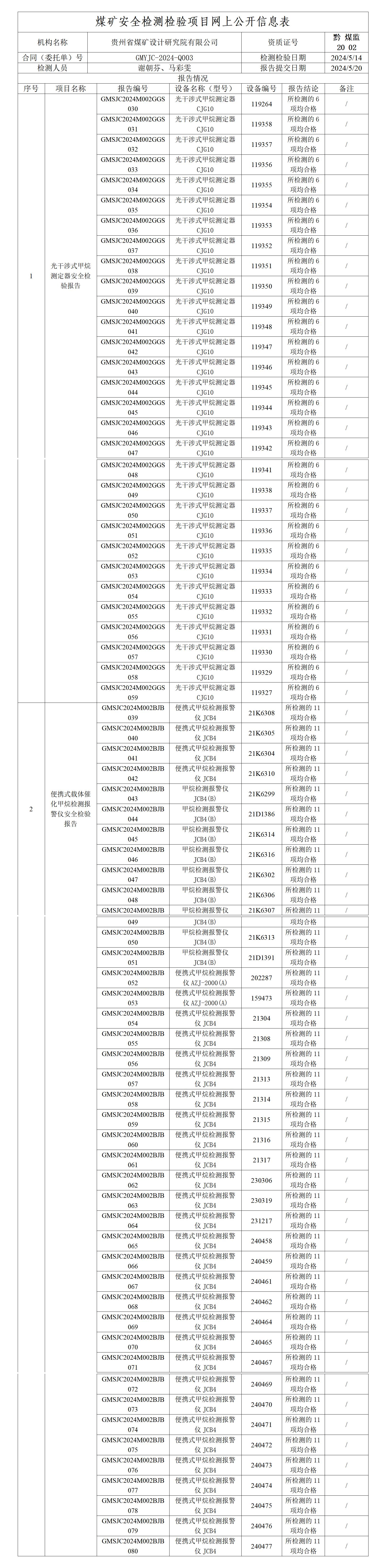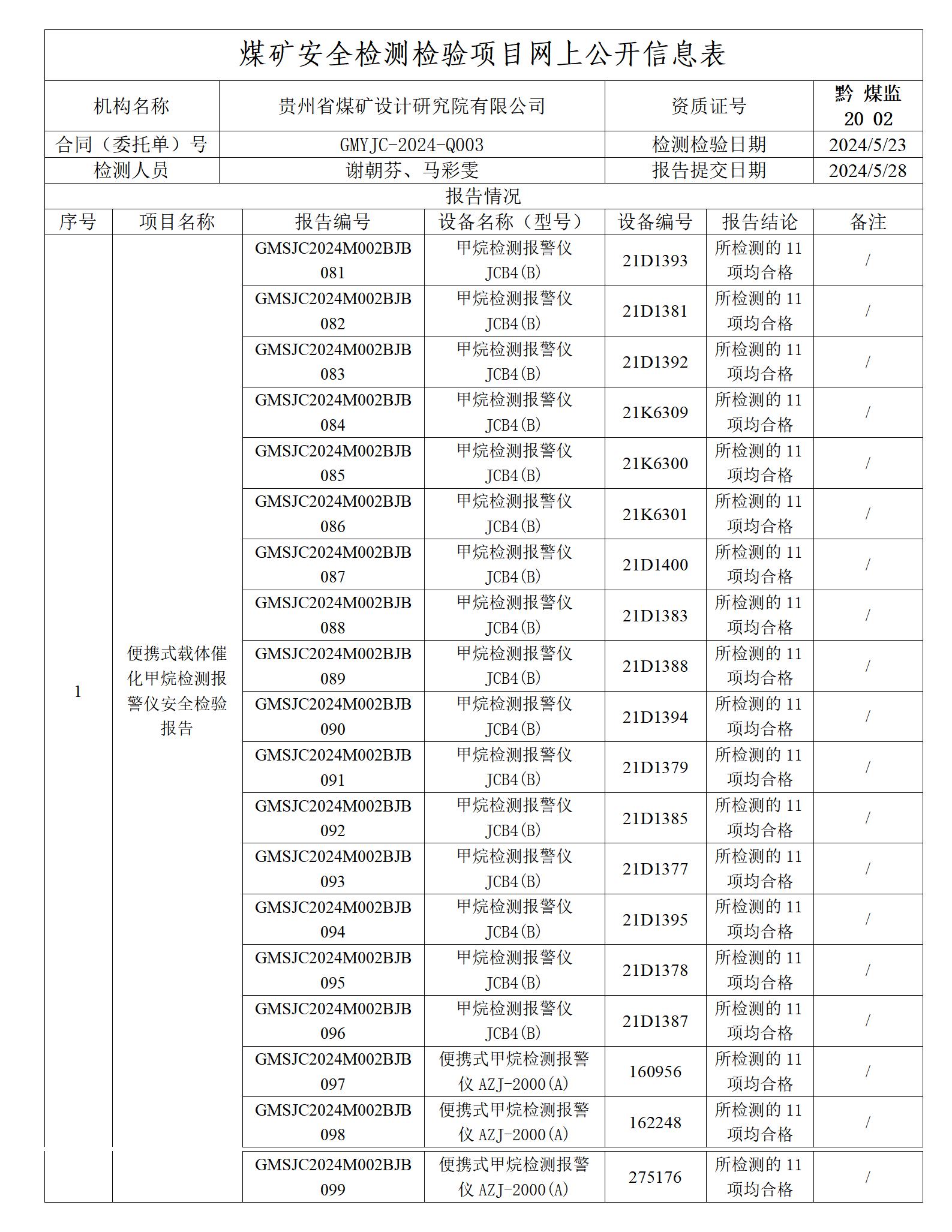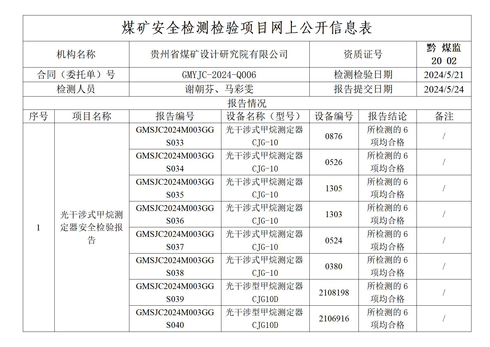 煤礦安全檢測檢驗項目網上公開信息表(2024.7.2)