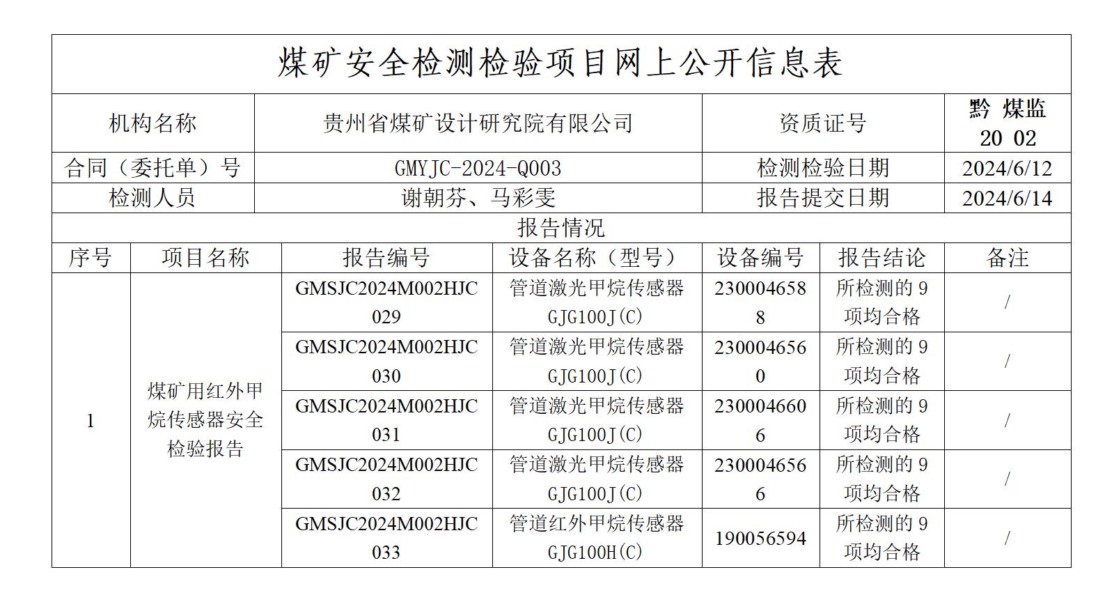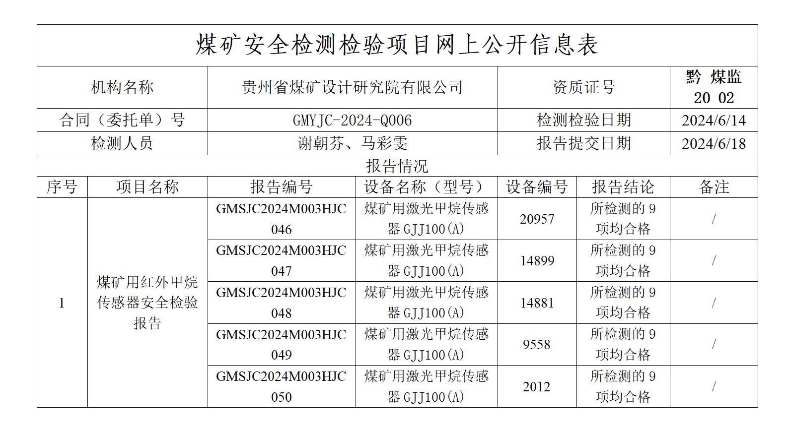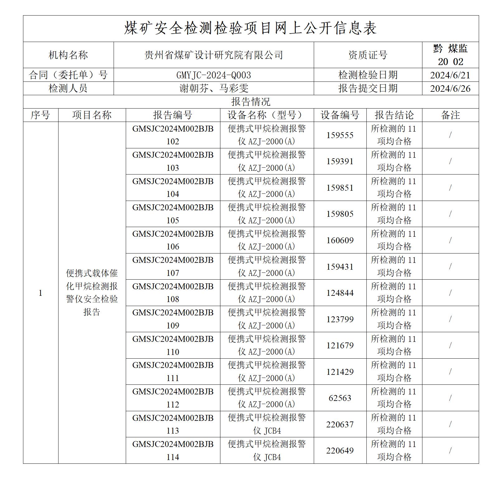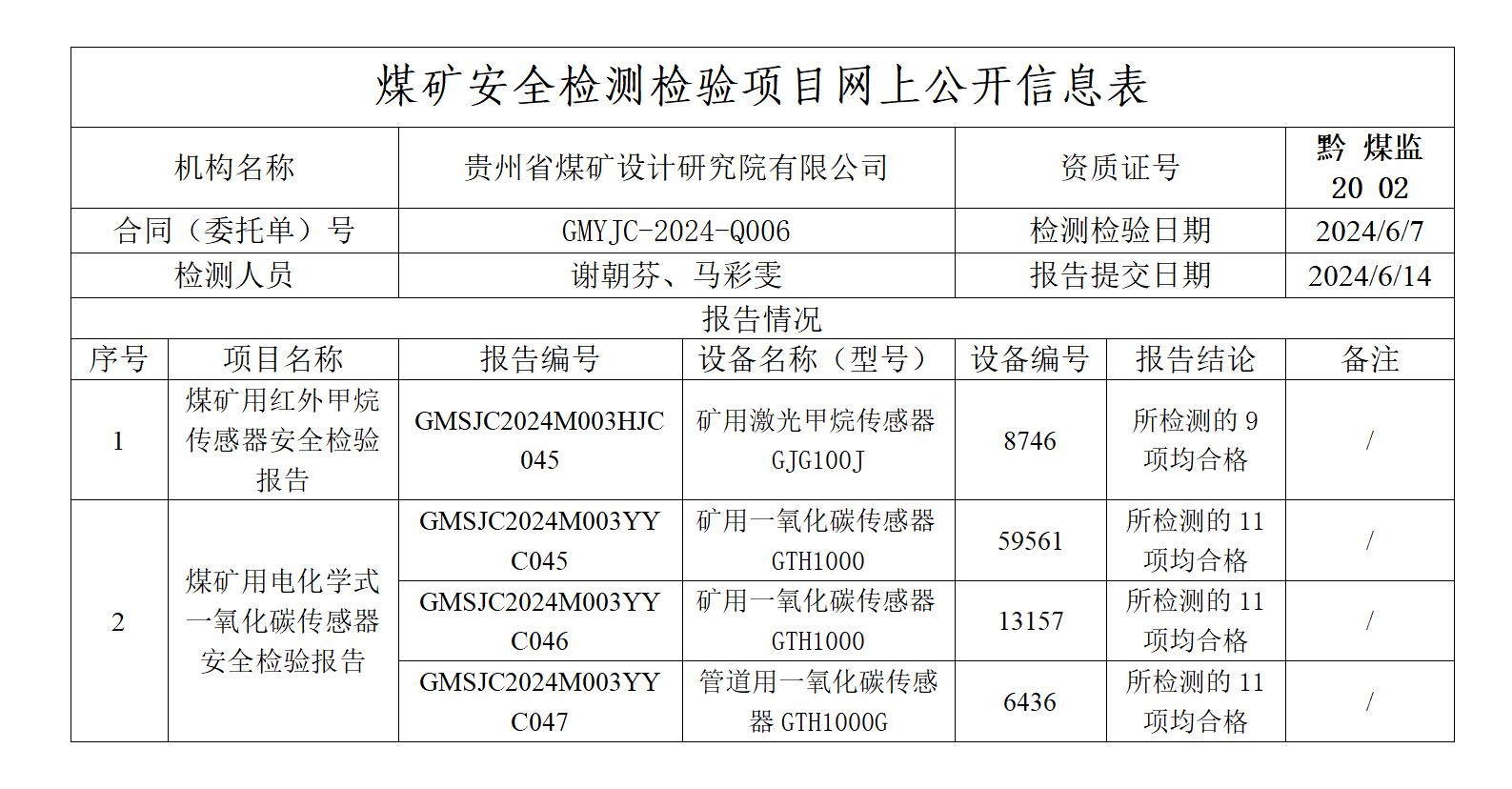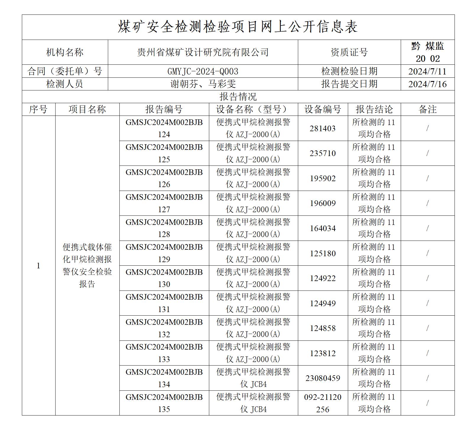 煤礦安全檢測檢驗項目網上公開信息表(2024.7.22)