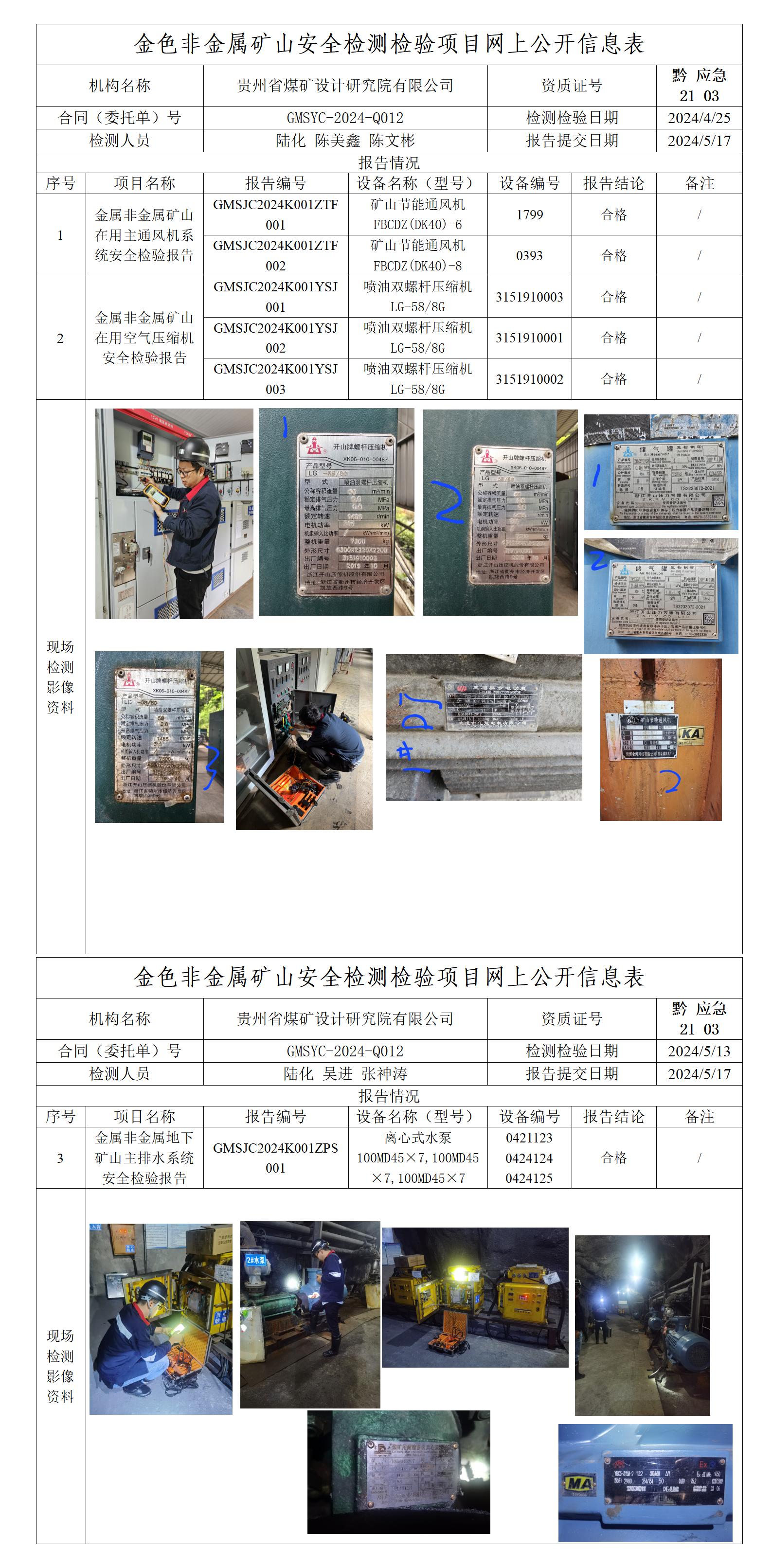 非煤礦山安全檢測檢驗項目網上公開信息表(GMSYC-2024-Q012)