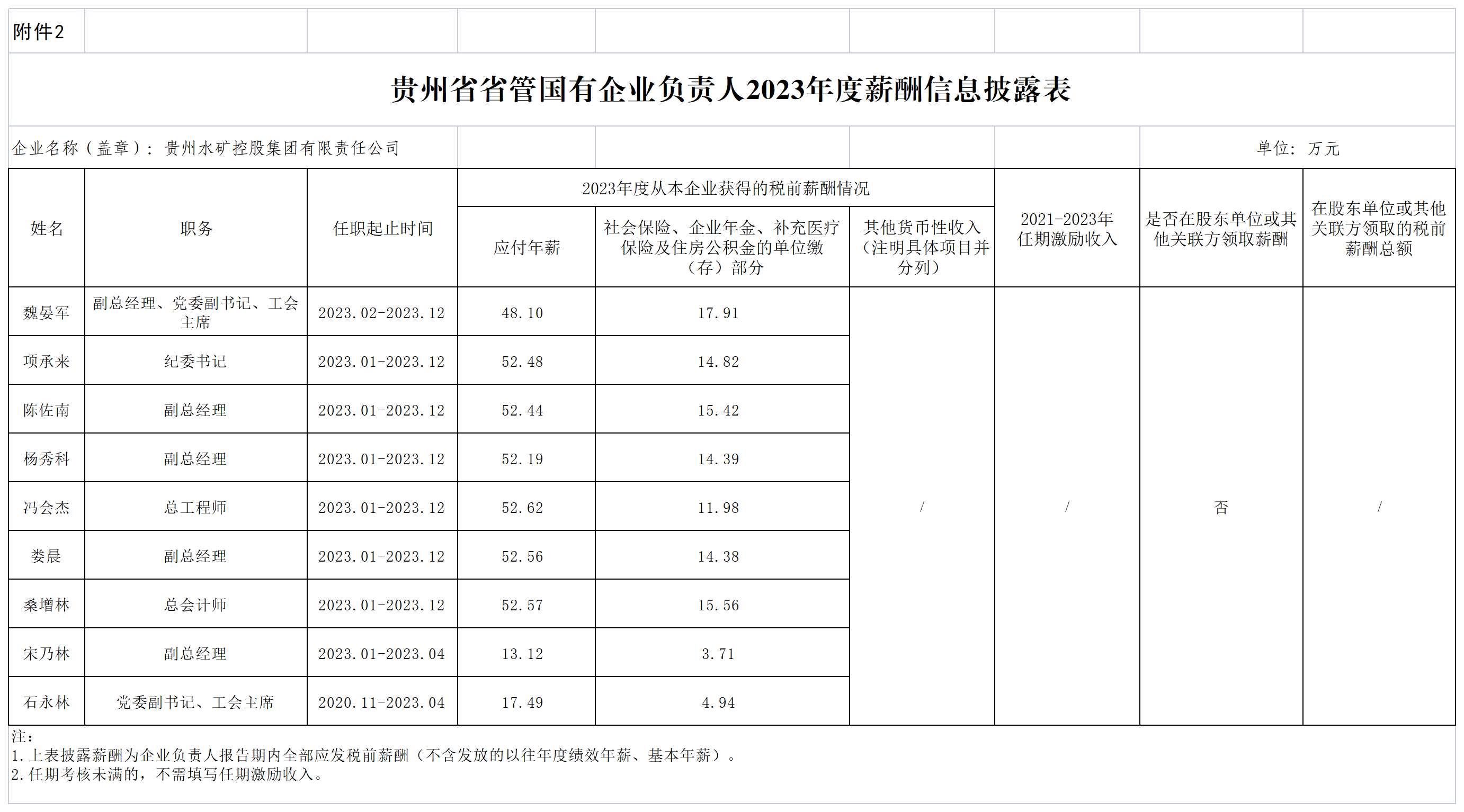 水礦控股企業(yè)負(fù)責(zé)人2023年度薪酬信息披露表