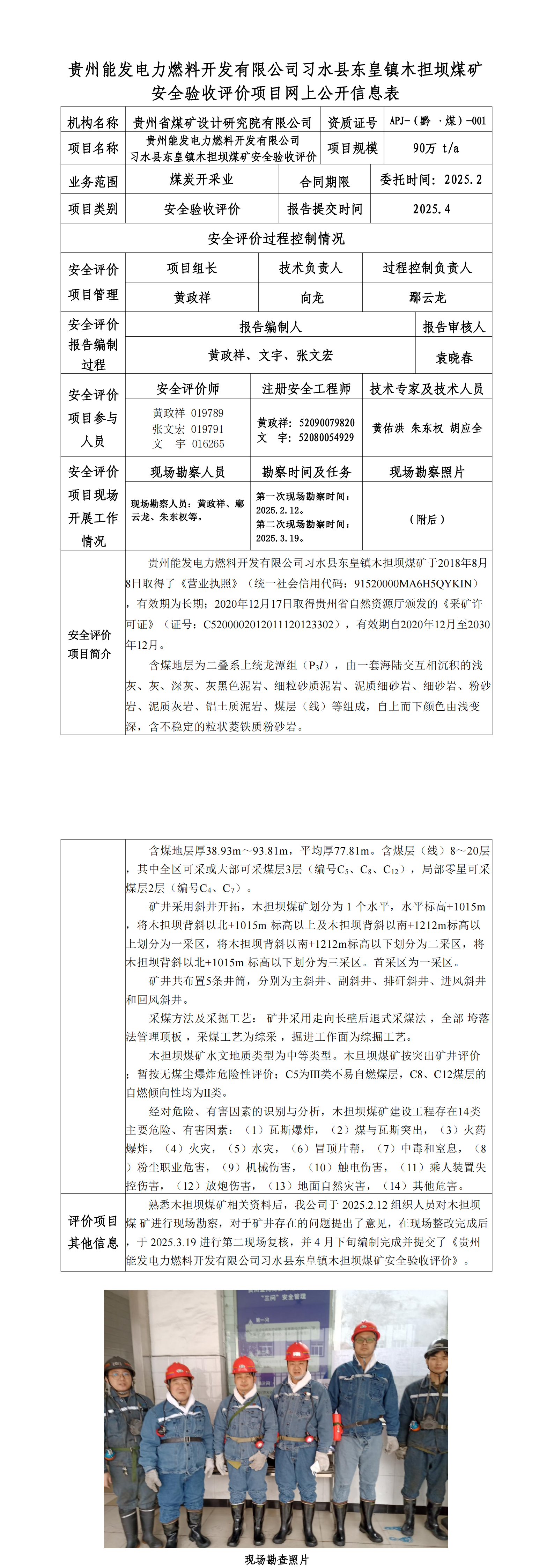 貴州能發電力燃料開發有限公司習水縣東皇鎮木擔壩煤礦安全驗收評價項目網上公開信息表
